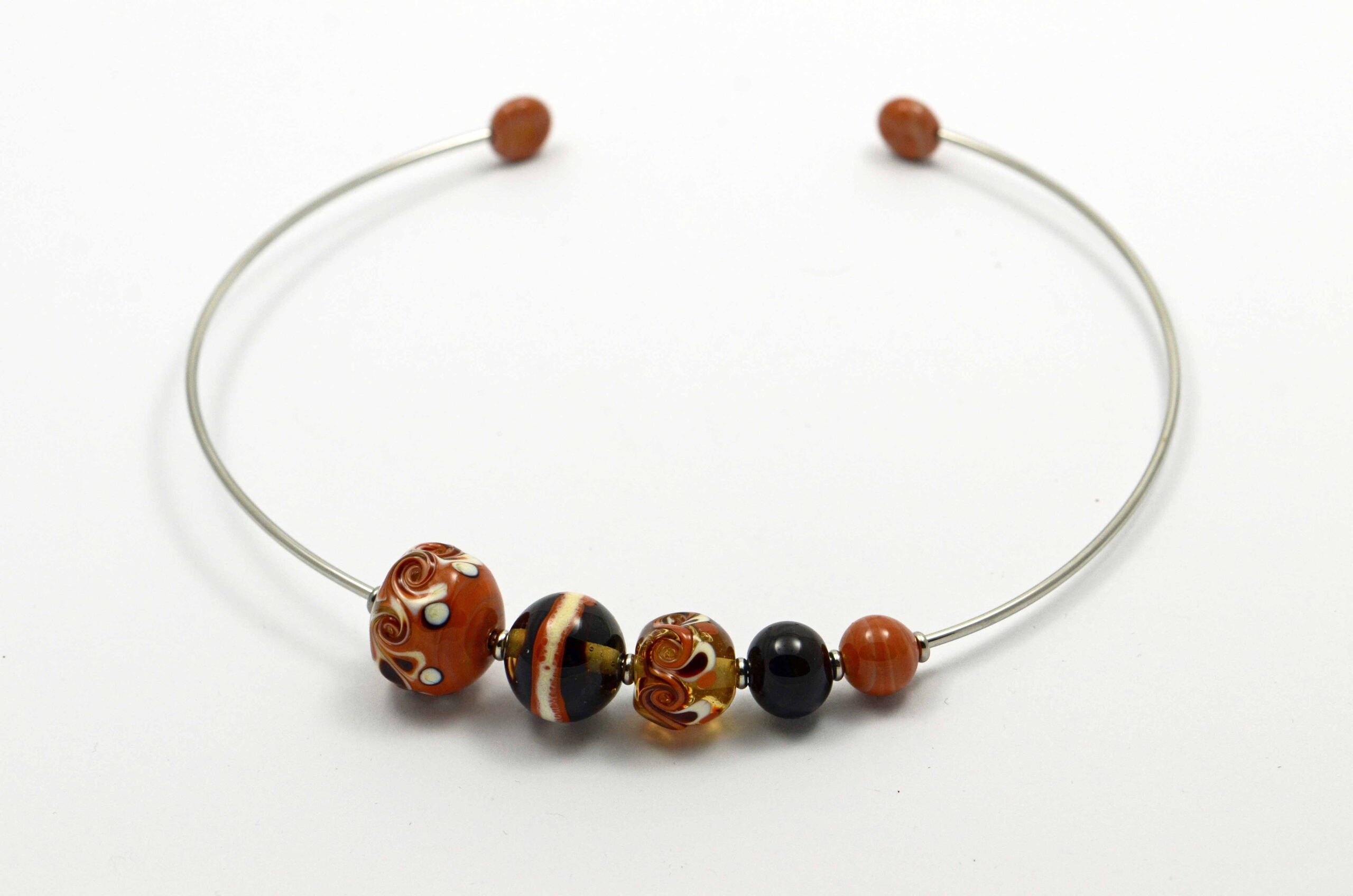 Náhrdelník s ručně vinutými korálky na obruči z chirurgické oceli.