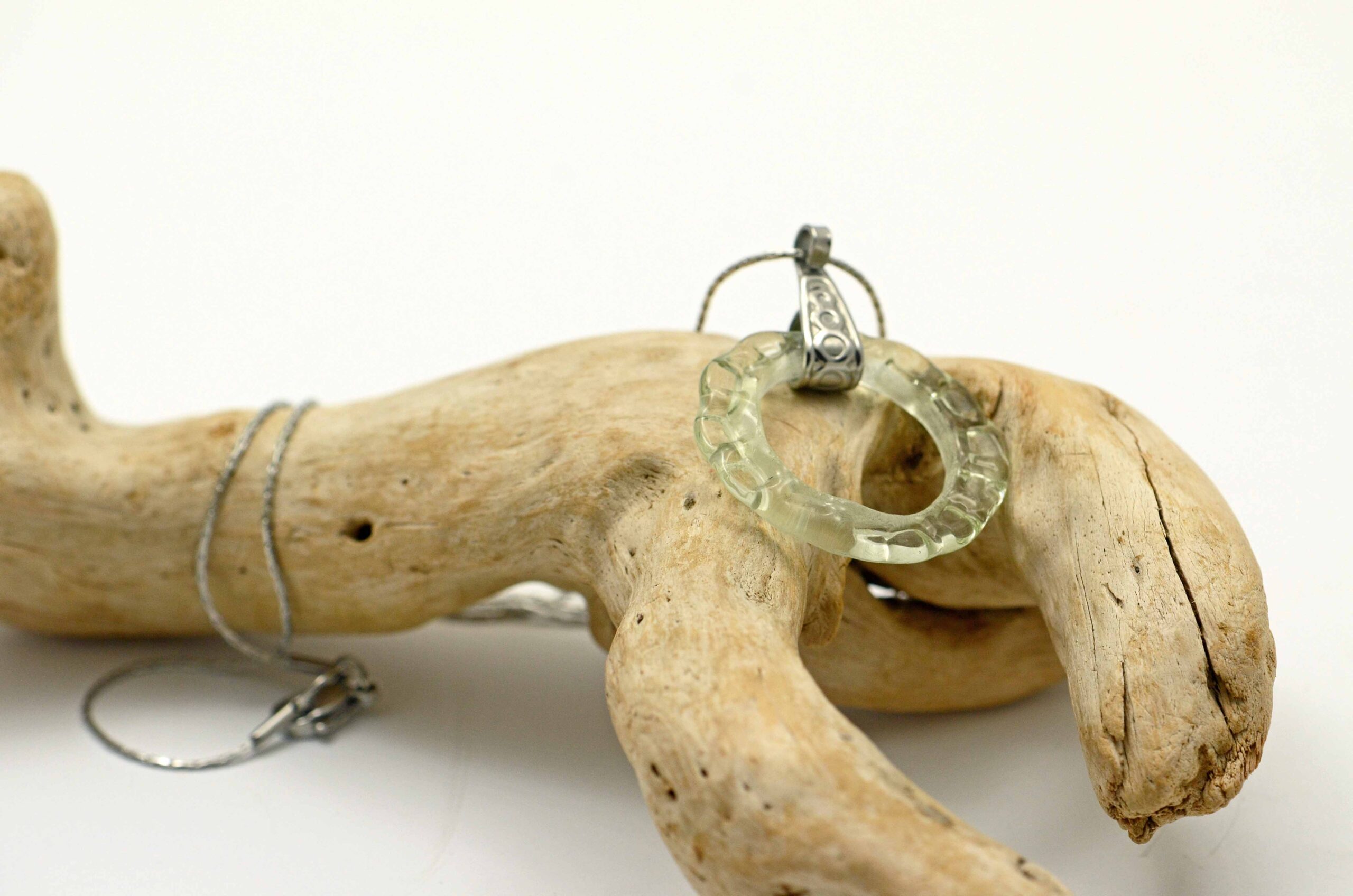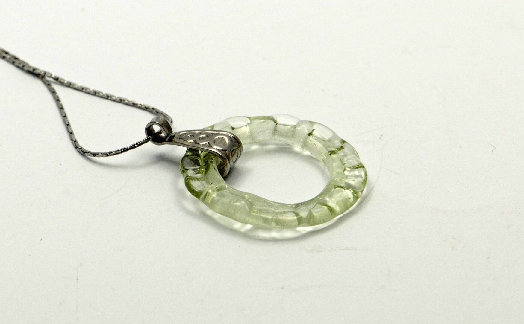 Náhrdelník s ručně vinutým kroužkem na řetízku z chirurgické oceli.