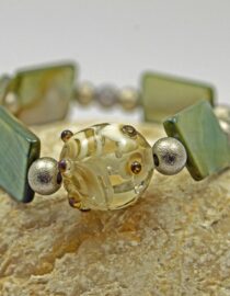 | materiál | chirurgická ocel, křišťál, leštěný kámen, růženín, vinutá perla |