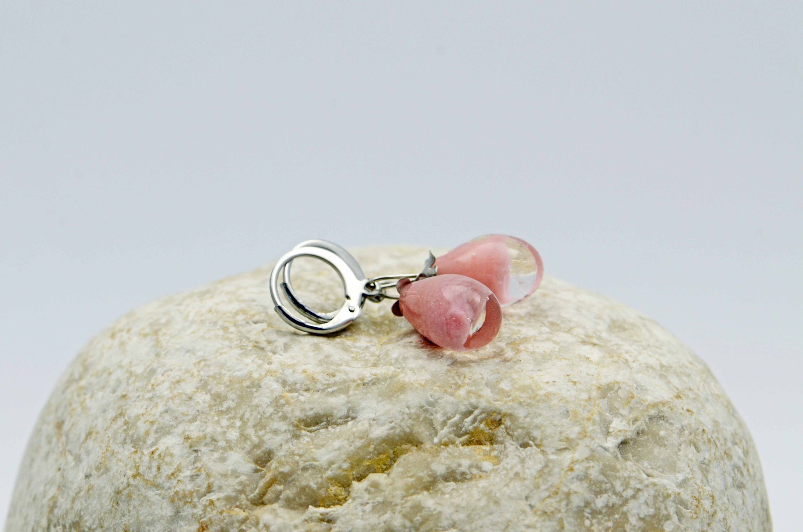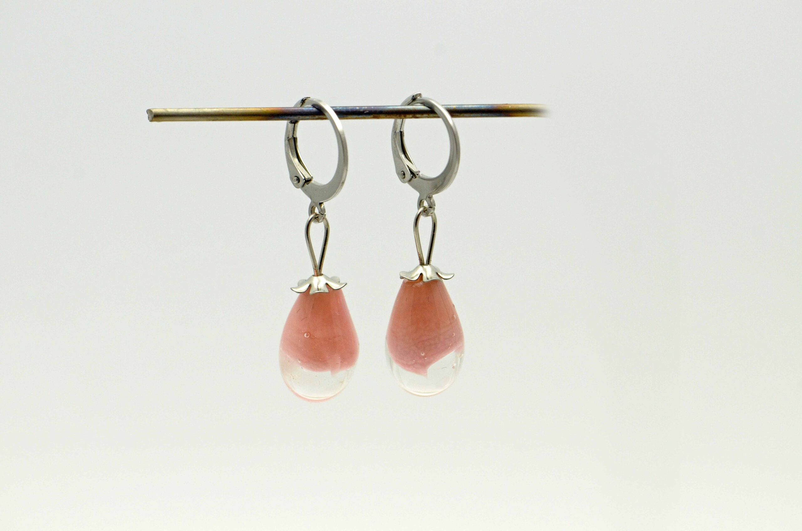 Náušnice s ručně vinutou kapkou na kroužku z chirurgické oceli. Kroužek má klasické patentní zapínání.