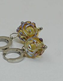 Náušnice s ručně vinutými autorskými korálky ve tvaru kapek v komponentu z chirurgické oceli.